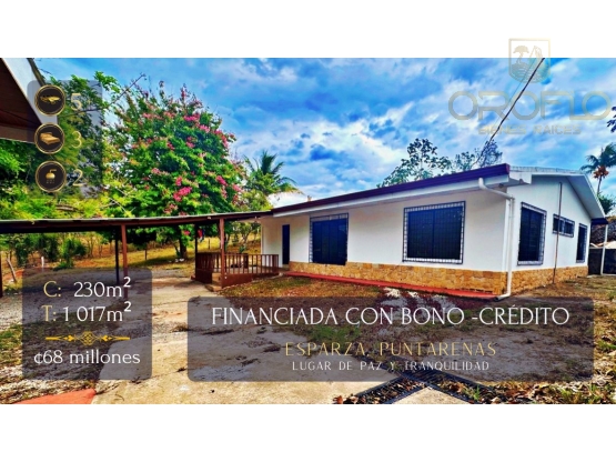 CASA FINANCIADA POR BONO-CRÉDITO ESPARZA, PUNTARENAS
